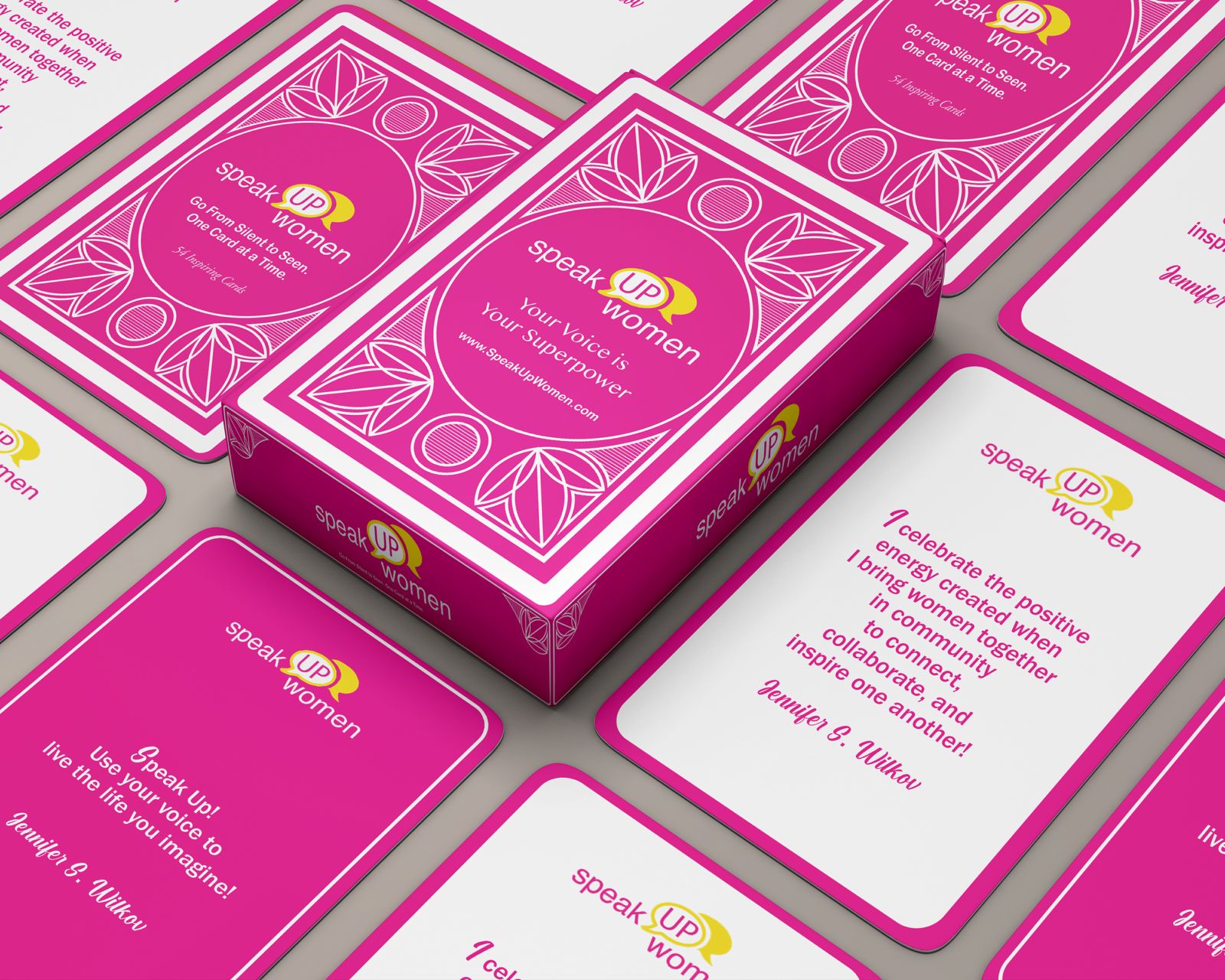 The Speak Up Women Inspiration Deck is designed to encourage, empower, and remind you that your voice matters — every day. Each of the 52 cards features an original, uplifting quote to inspire confidence, courage, and clarity as you go from silent to seen in your life, business, and relationships.